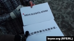 На одной из акций активисты раздавали листовки с надписью: «Мне болит Крым» – на разных языках мира.