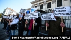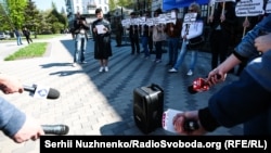 Возле здания посольства России в Киеве 26 апреля активисты проводят акцию «Позвоните в ФСБ», сообщает корреспондент Крым.Реалии.