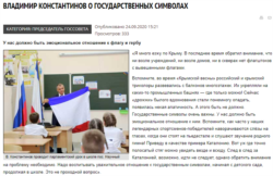 Кстати, несколькими днями ранее, те же «Крымские известия» опубликовали еще две заметки, где Владимир Константинов учит читателей, а также детей на уроке в одной из школ, как нужно относиться к российским символам. Одна из них: «Мы несли триколор в своем сердце» (думаю, тут не совсем правда – человек, родившийся в советское время в Молдове, когда триколор был запрещен, и все время проживший в Украине, Константинов если и знал о триколоре, то совсем поверхностно, и уж вряд ли он был в его сердце. – авт.).