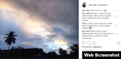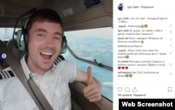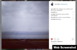 - 22 июля. Байбаков делает пост, на котором виден одномоторный самолет Cessna 182. Подпись переводится на русский так: "Диспетчер говорит: ваш самолет слишком мал, мы не видим его в небе". Радио Свобода удалось установить его регистрационный номер – RA-67717 (подробнее см. врезку).