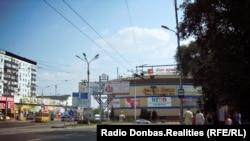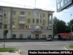 Бывший продуктовый магазин «Риск». В мирное время возле него стояли столы с зонтиками – там было кафе, где отдыхали дончане.