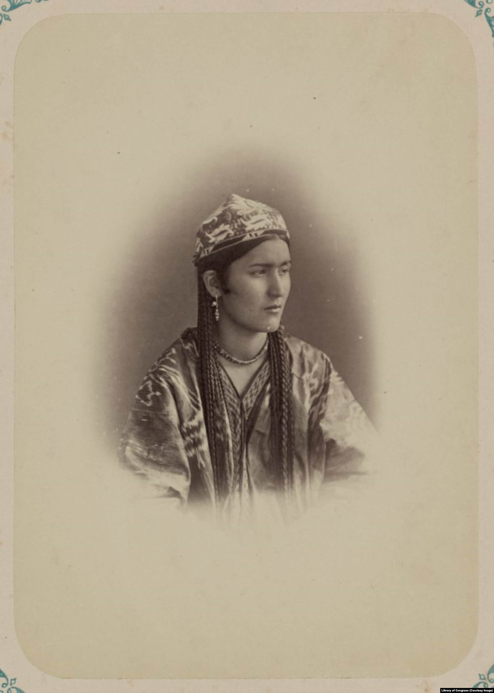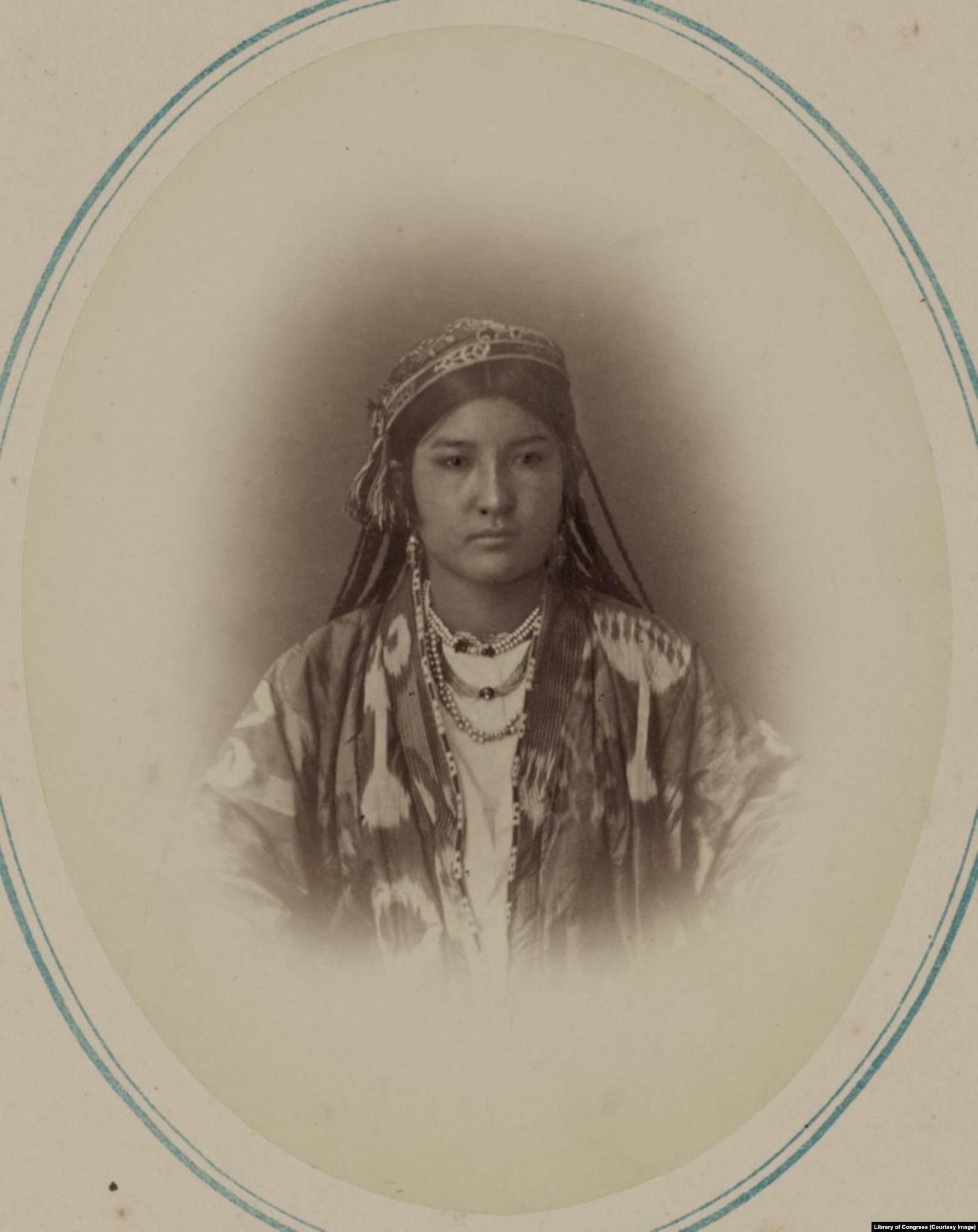 Женщина в камзоле, накинутом на голову. Из "Туркестанского альбома" 1870-х годов (составители Александр Кун, Николай Богаевский). Фото: Библиотека Конгресса США