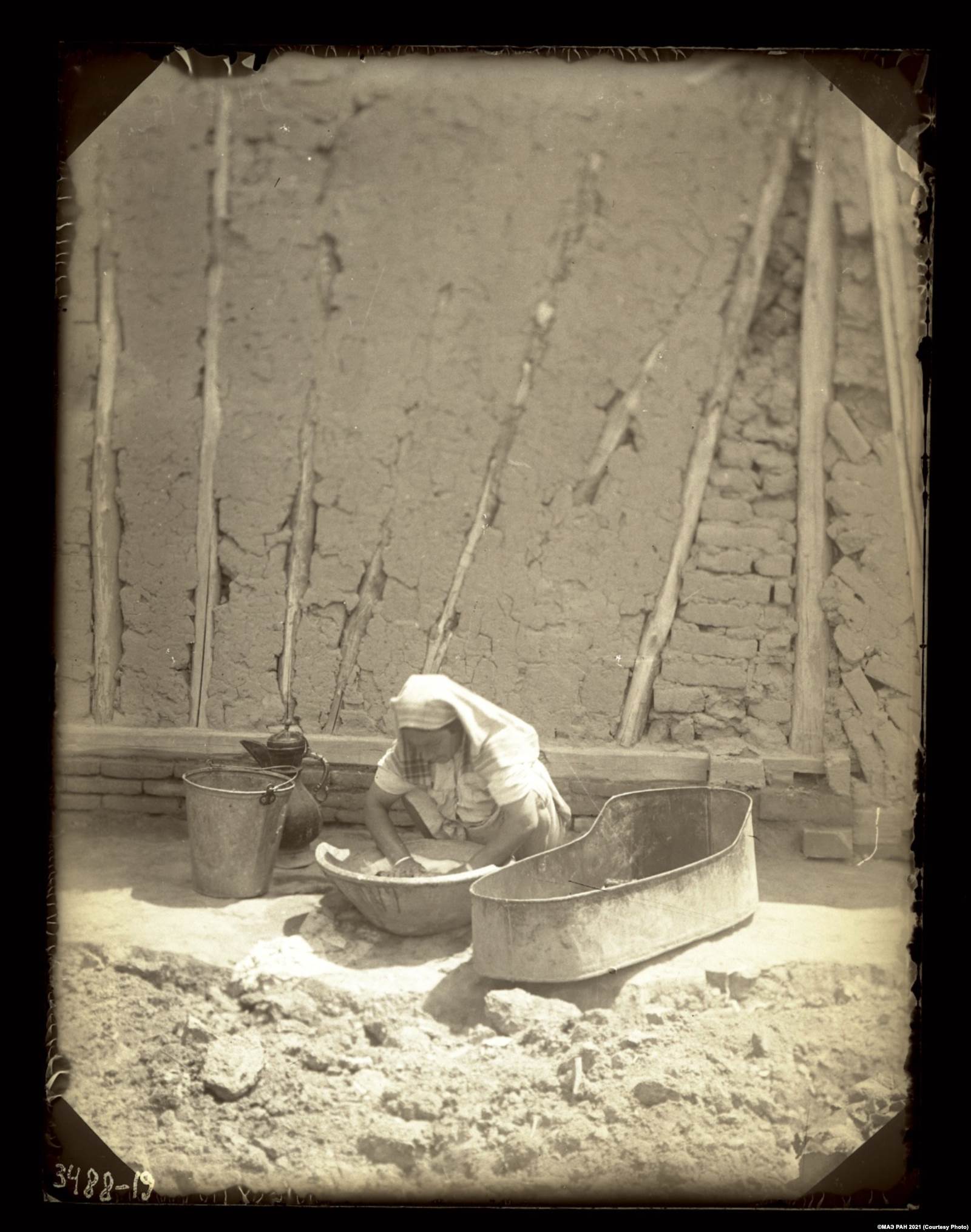 Таджичка из Чуста, стирающая белье в "тахоре" (большом глиняном тазу). 1926г. © МАЭ РАН 2021