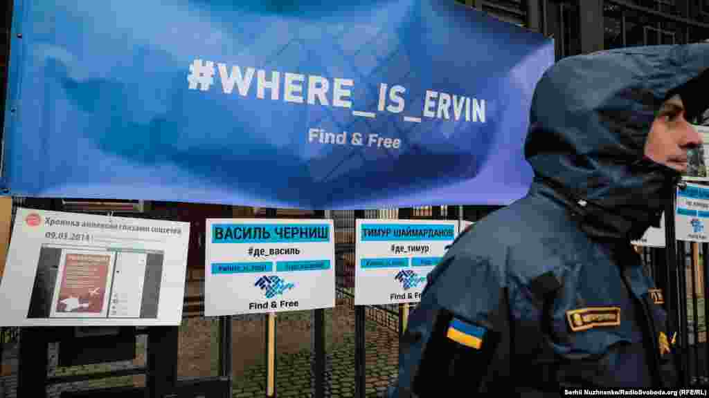 Под посольством России в Киеве 1 марта в рамках информационной кампании «FIND&FREE» прошла акция «Как антигерой «крымской весны» вызвал обострения у вежливых людей».