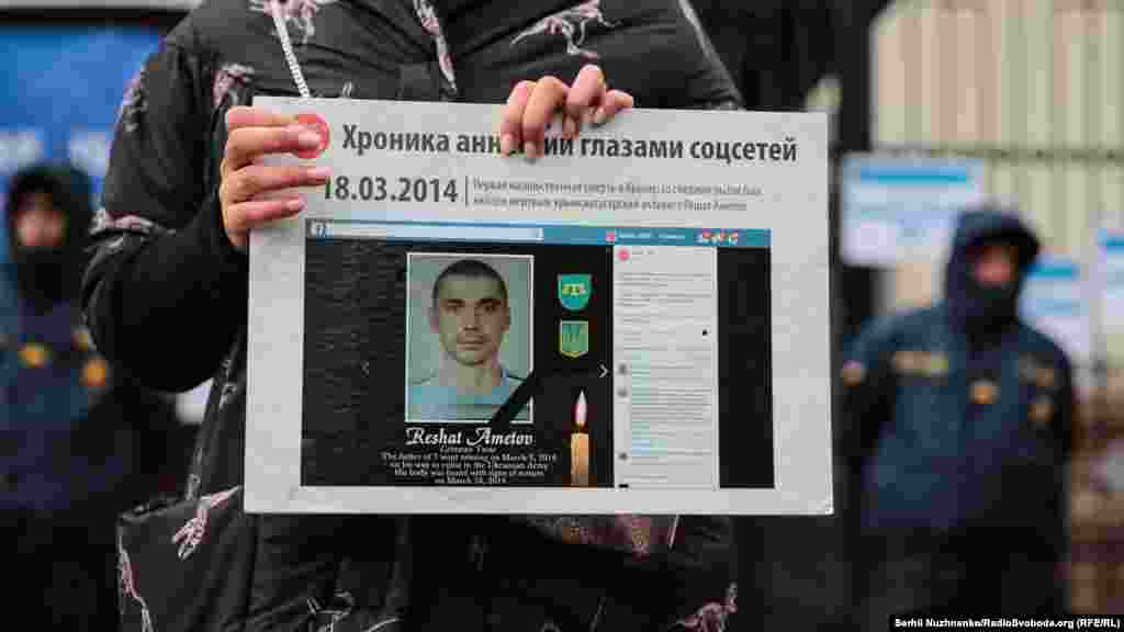 «Мы все помним, что Решат Аметов – первая смерть, которая состоялась на территории Крыма. Это было первое насильственное исчезновение в истории оккупированного Крыма. Но с того момента никто не ведет никакого расследования», – сказала во время акции координатор общественной инициативы «КрымSOS» Тамила Ташева.