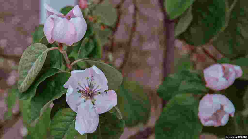 Во дворах и садах Севастополя в середине апреля зацвела айва. Ее плоды созреют только к осени, а пока горожане могут любоваться тем, как деревья покрываются мелкими бело-розовыми цветками. В Севастополе преимущественно можно встретить яблоковидную айву, хотя в рамках вида существуют как минимум пять разных форм ее плодов.