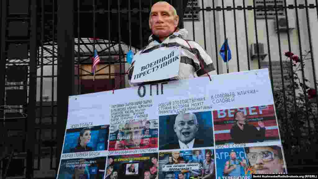 Во время акции бывшие политзаключенные – украинцы и крымские татары, которые побывали в заключении в России и аннексированном Крыму – дали показания в импровизированном «Гаагском суде». Таким образом активисты решили «поздравить» с днем рождения президента России.