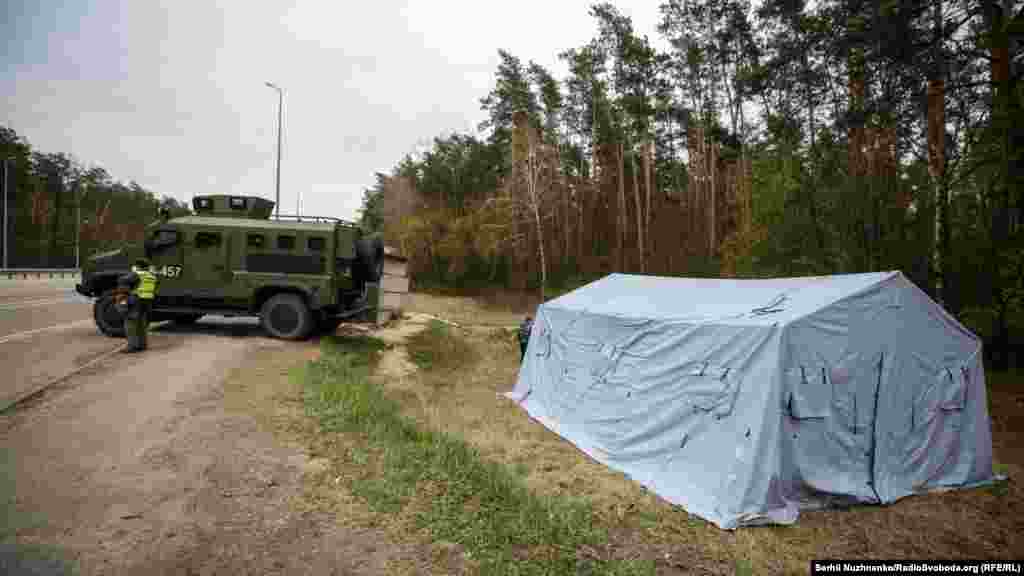 Начиная с 16 апреля на основных подъездах к Киеву установили блокпосты, на которых медики и полиция измеряют температуру всем въезжающим в украинскую столицу.