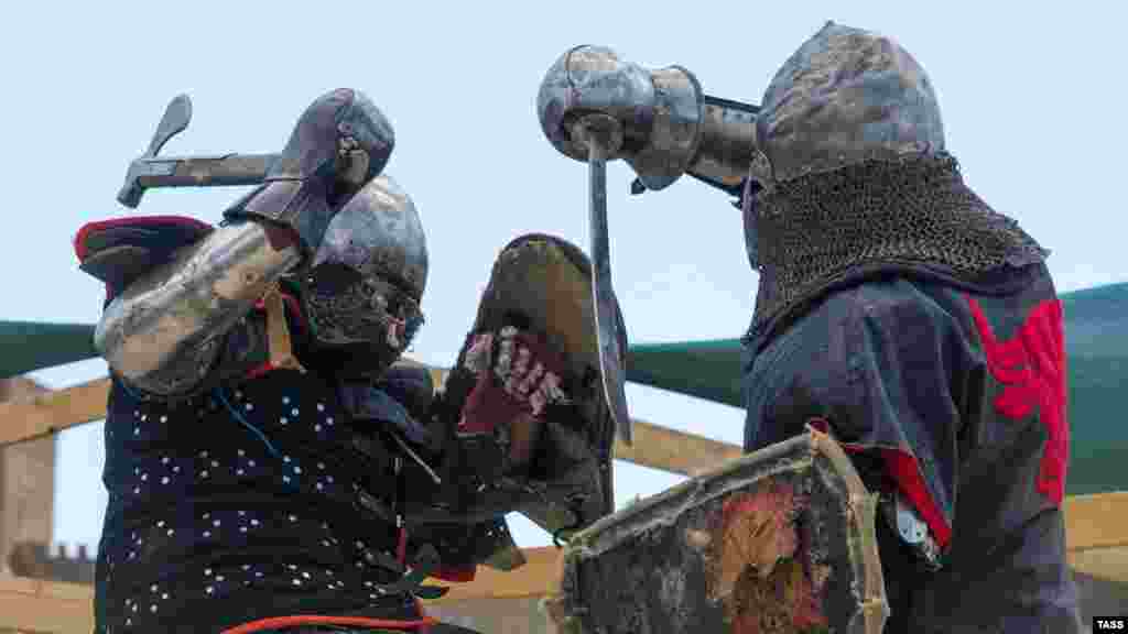Между командами военно-исторических клубов, которые принимают участие в фестивале, проходят постановочные сражения, как массовые, так и один на один. Прежде, чем начать бой, рыцари надевают доспехи весом почти 40 килограмм.