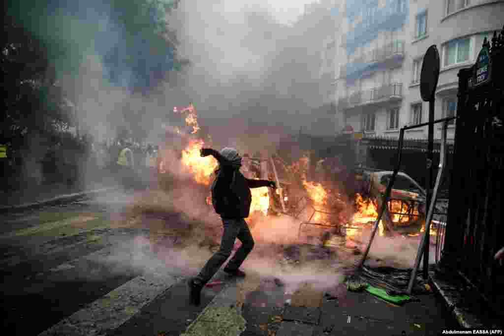 В результате столкновений в центре Парижа горели машины и происходили массовые беспорядки