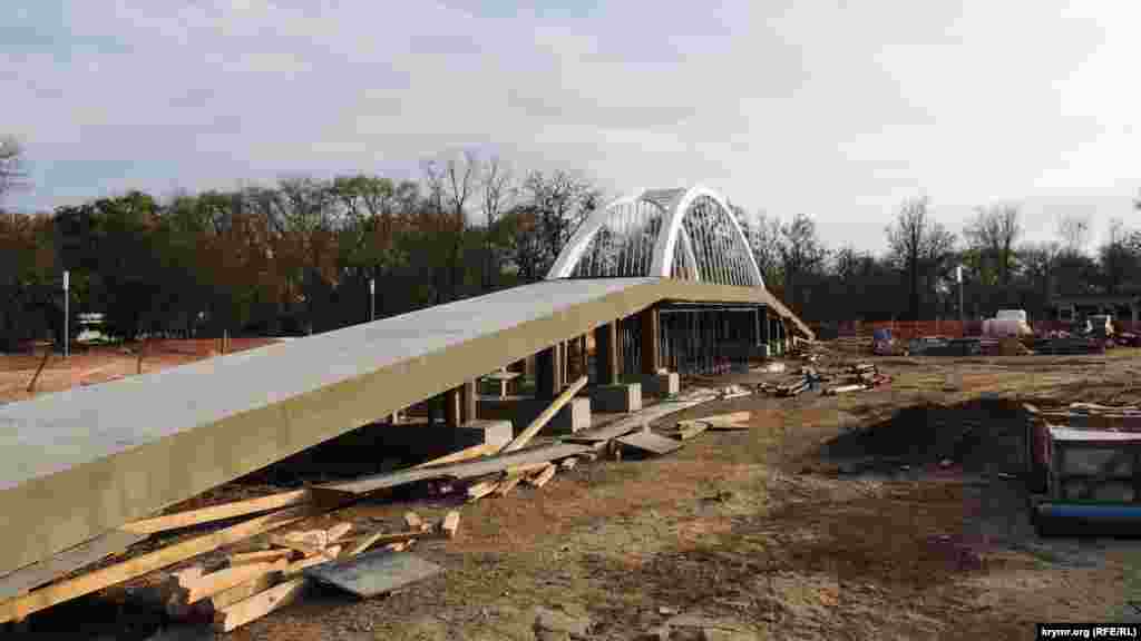 В Комсомольском парке Керчи завершают строительство инсталляции Керченского моста. Об этом на своей Фейсбук-странице написал подконтрольный России глава администрации Керчи Сергей Бороздин.
