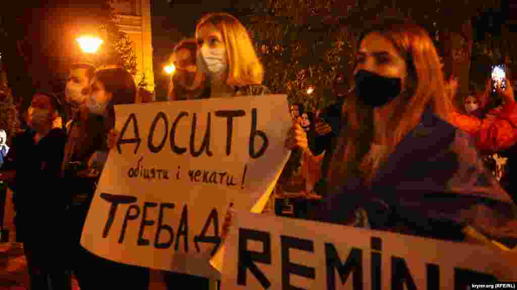После выступления родственников заключенных, участники мероприятия двинулись колонной к Офису президента Украины. Среди озвученных требований к украинским властям: принятие закона о военных преступлениях и о защите пленных и политзаключенных Кремля.
