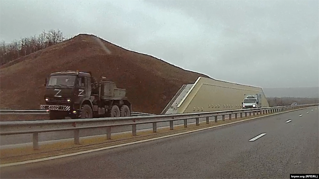 Сегодня по трассе «Таврида» в направлении от Севастополя к Бахчисараю проехали несколько автоколонн российских военных «Камазов», предназначенных для перевозки личного состава, сообщают корреспонденты Крым.Реалии. На бортах всех транспортных средств были опознавательные знаки в виде латинской буквы "Z". Некоторые автомобили двигались в одиночном порядке. Также замечен один автомобиль, ехавший в направлении Севастополя, эта машина была грязной.