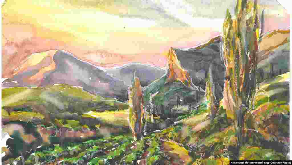 В Художественной галерее Никитского ботанического сада в Большой Ялте проходит выставка картин акварелью художника Олега Селянина «С Запада на Восток – через Крым».
