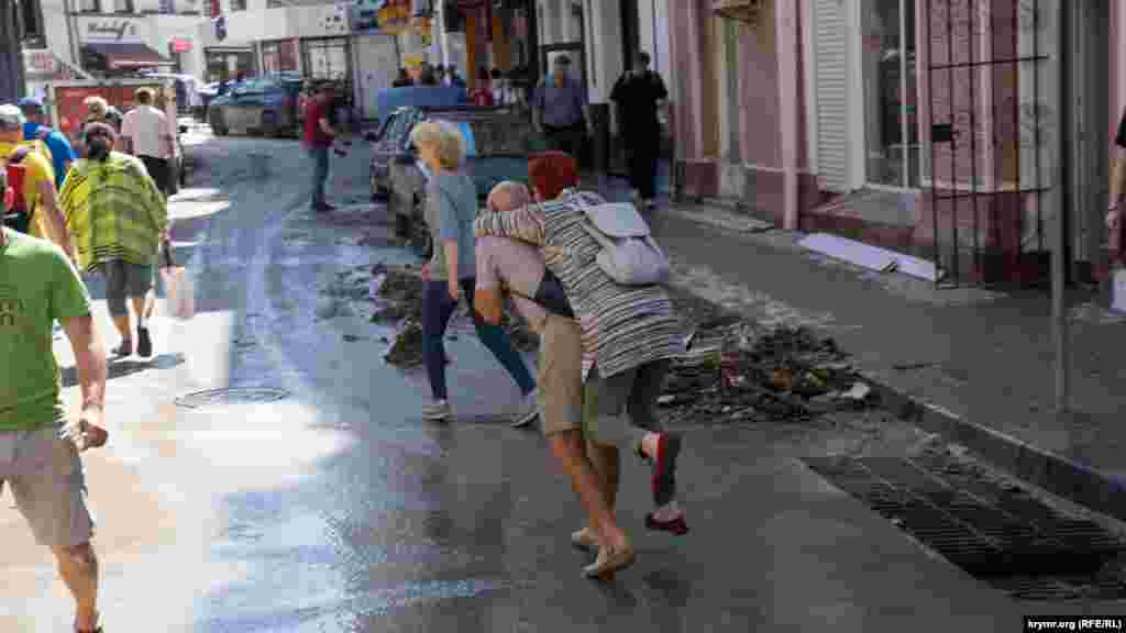 Жители курортной столицы Крыма продолжают устранять последствия небывалого наводнения. Где-то воду выкачивают насосами, а где-то – вычерпывают вручную.