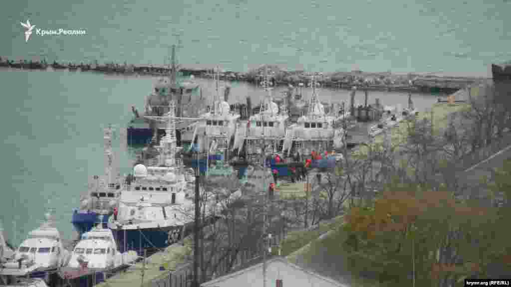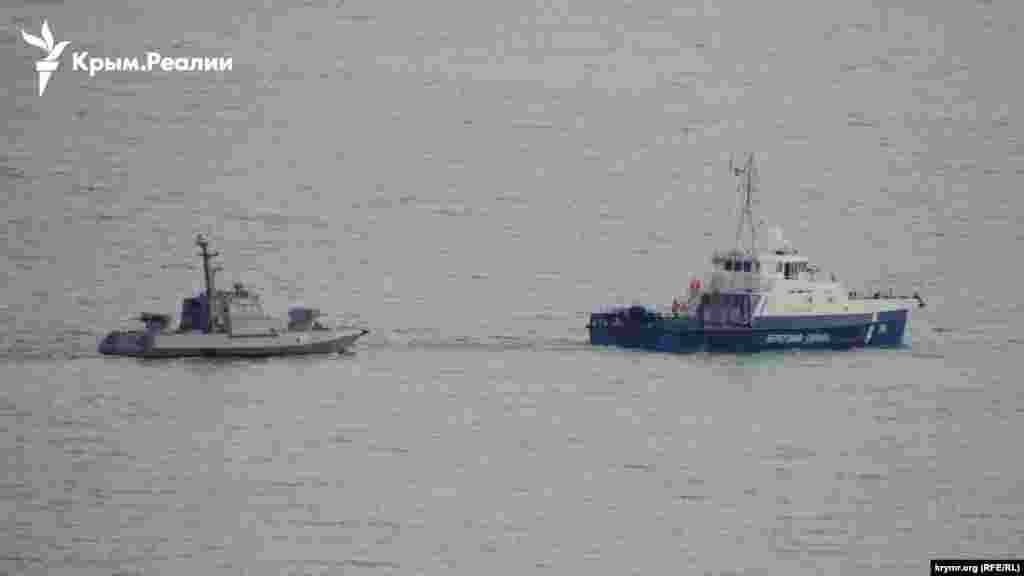 Украинские военные катера «Бердянск» и «Никополь», а также буксир «Яны Капу», захваченные год назад российскими силовиками, днем 17 ноября вывели из акватории стоянки судов «Генмол» в Керчи. По информации корреспондента Крым.Реалии, незадолго до этого территорию у воинской части, где находились украинские катера, перекрыли, на месте дежурили полиция и люди в штатском.