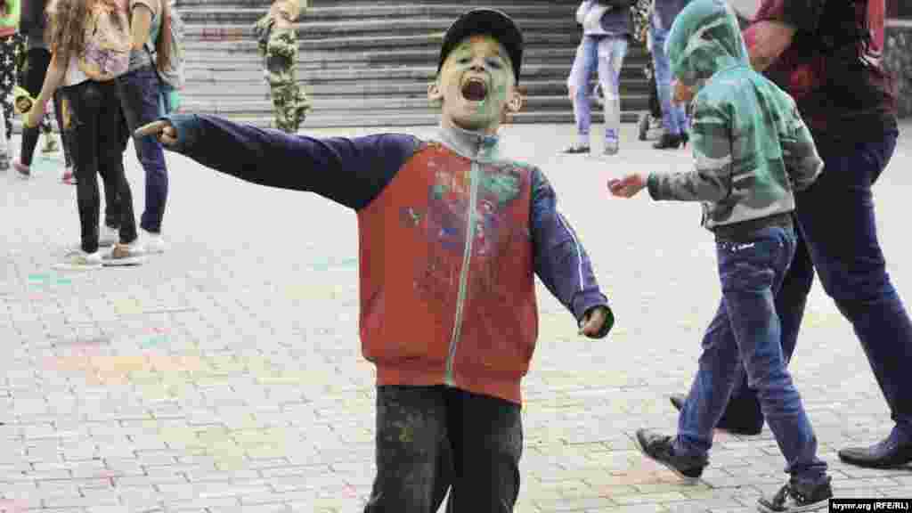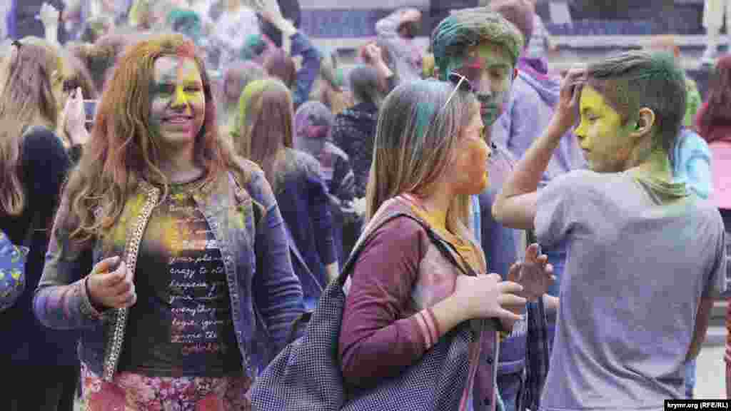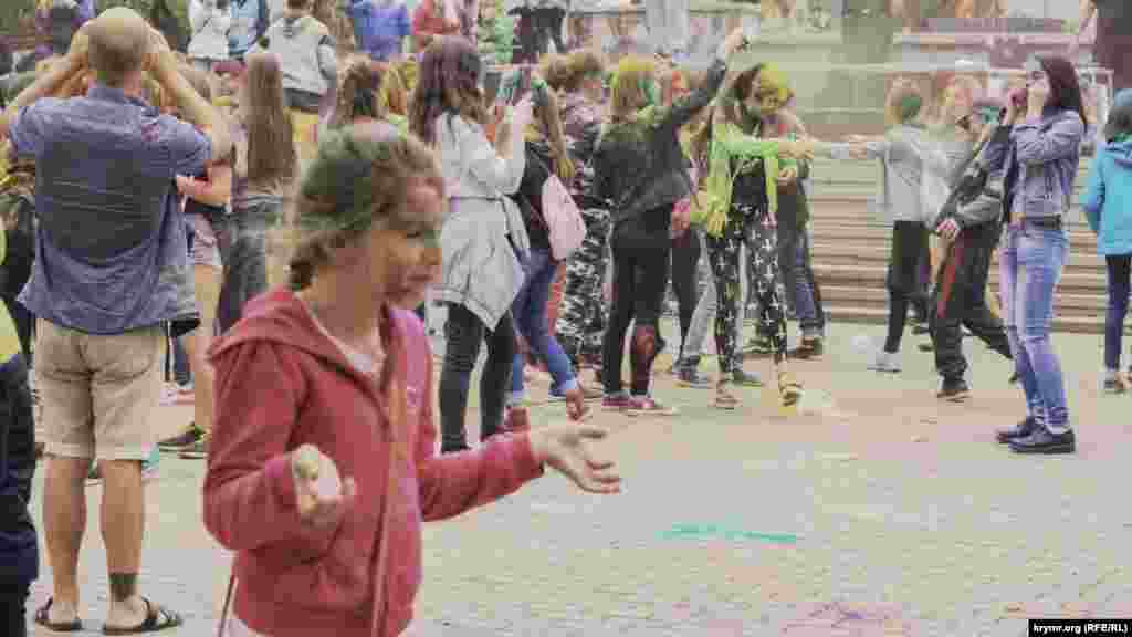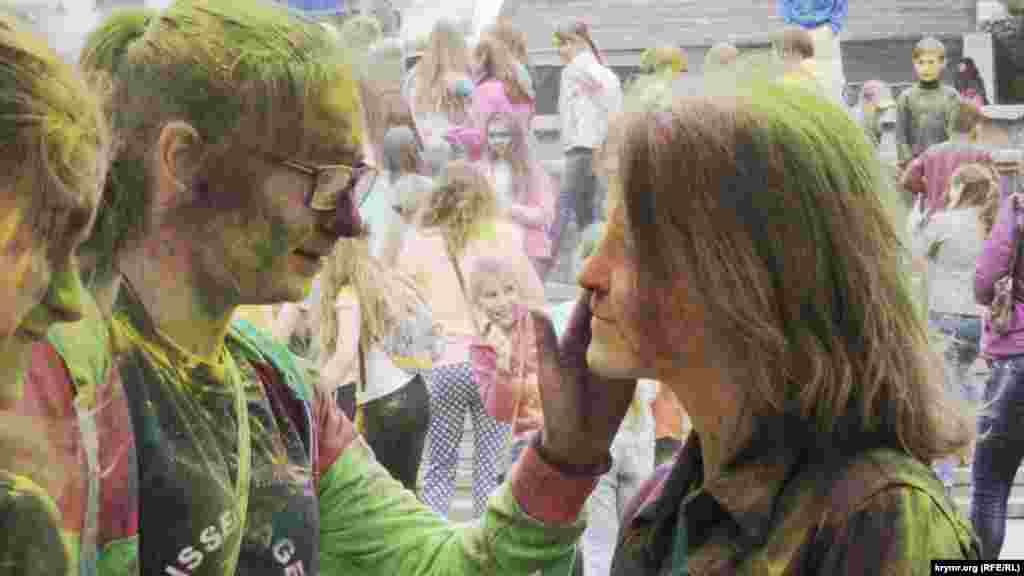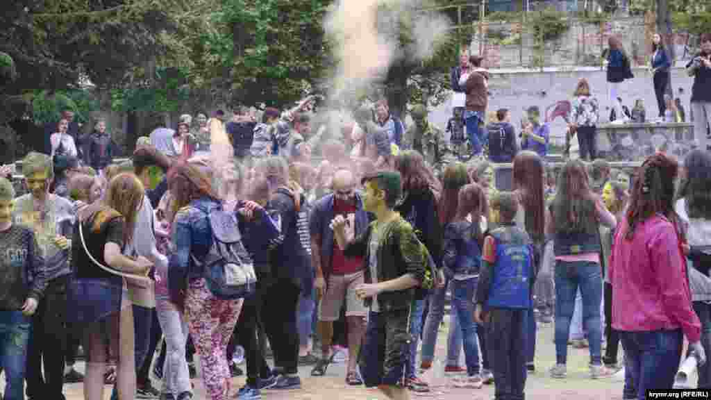 В воскресенье 21 мая в Феодосии состоялся праздник красок. На площади возле светомузыкального фонтана дети и взрослые бросались разноцветными красками, танцевали, участвовали в конкурсах.