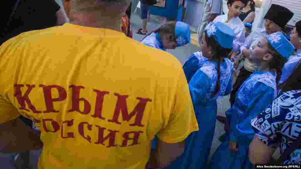 День национального флага крымских татар отметили в Феодосии. Несколько десятков горожан и туристов собрались на привокзальной площади посмотреть на праздничный концерт. Помимо народных песен и танцев, артисты вынесли на площадь огромный флаг и прочитали молитву вместе с имамом.