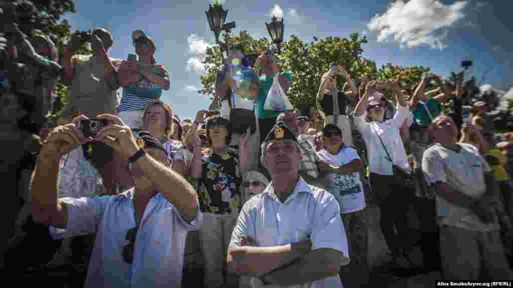 Служащие Черноморского флота устроили для горожан огромное действо в Севастопольской бухте. На праздник собралось более 100 тысяч зрителе. В морском параде участвовали 36 кораблей и авиационная техника.