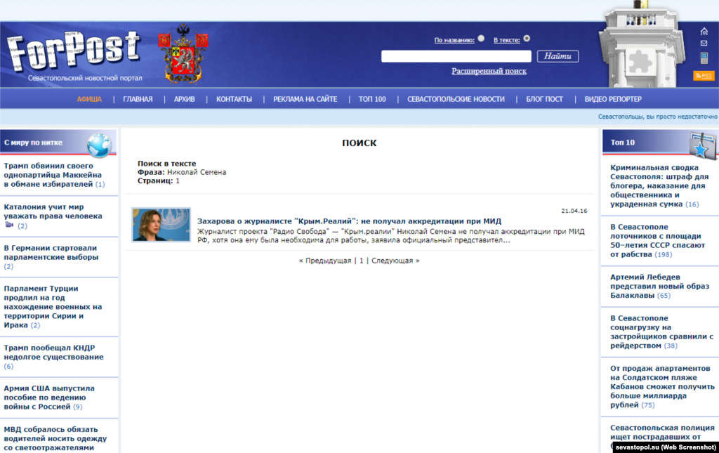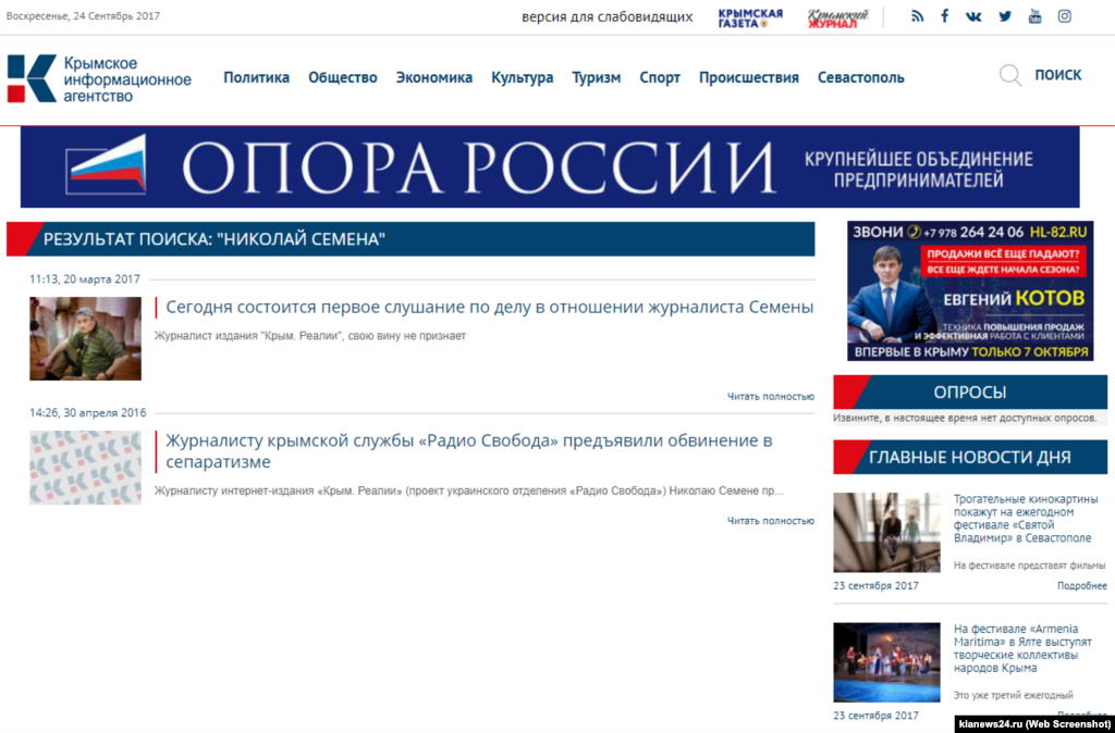 Ведущие крымские СМИ, в разное время упоминавшие Николая Семену, но проигнорировавшие судебный приговор по его делу.