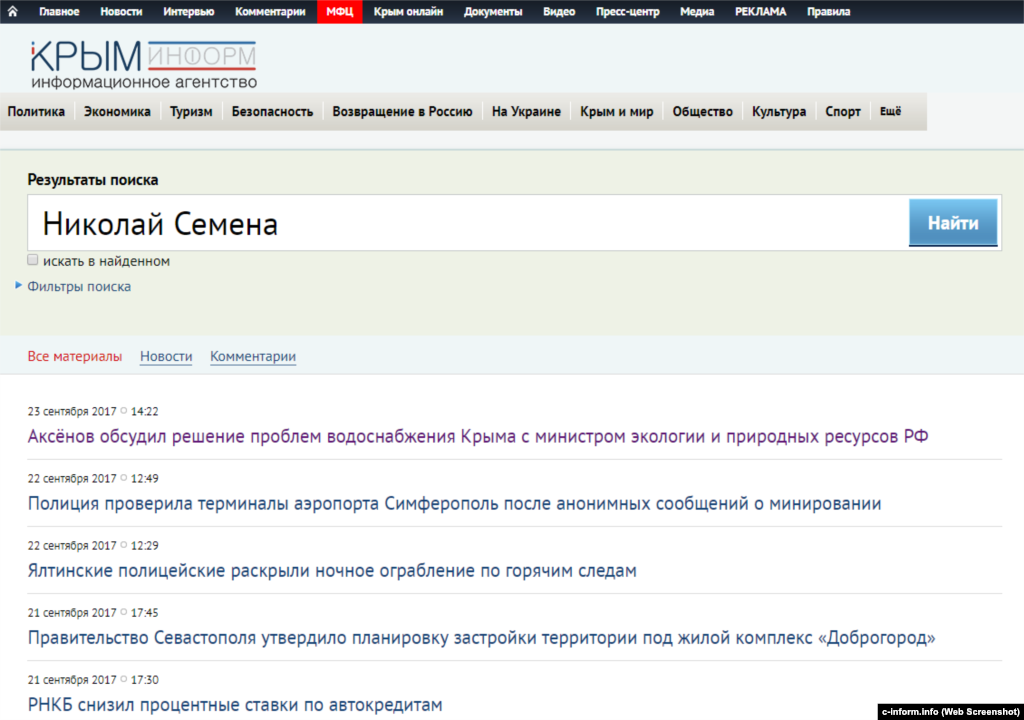 Ведущие крымские СМИ, вообще никогда не упоминавшие Николая Семену