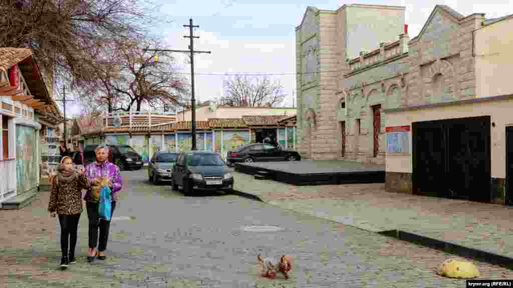 В Евпатории полным ходом идет реконструкция города. На улице укладывают новую плитку, ведут ремонт исторических зданий и других учреждений. На набережной города также проводят строительные работы. Город готовится к предстоящему туристическому сезону.