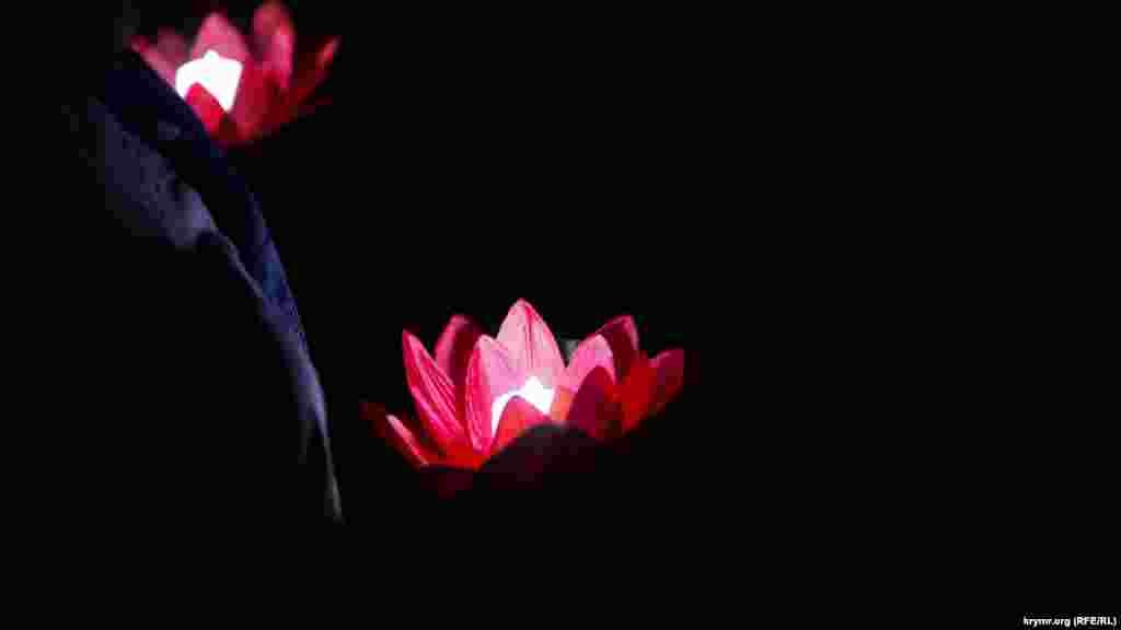 В Симферополе 13 и 14 июля прошел «Фестиваль водных фонариков». Горожане собрались в парке Гагарина и одновременно спустили на воду сотни фонариков в форме лотосов, лилий и кувшинок, внутри которых горела свеча.