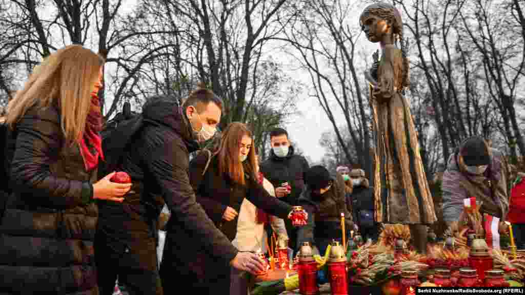 В Киеве возле «Мемориала жертвам Голодомора» собрались сотни людей, чтобы почтить память погибших от голода.