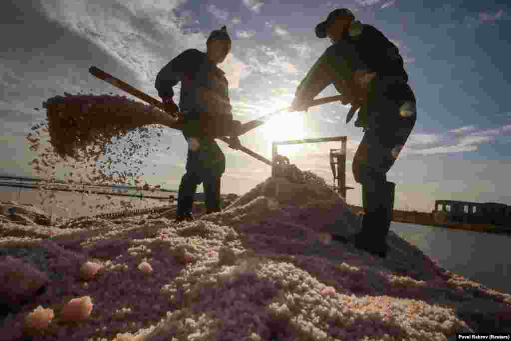 Сбор урожая розовой соли в Крыму