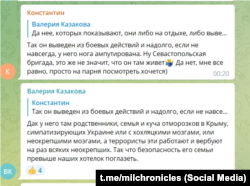 Под видео с моментом гибели Старовойтова в телеграм-канале «Военная хроника» – более двух тысяч восьмисот комментариев, в основном пользователей из России. Часть из них возмущена тем, что профессиональные российские военные не умеют грамотно передвигаться в боевых условиях.