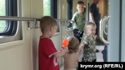 В поезде детей больше, чем взрослых. Едут большими семьями.
