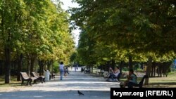 Далее иду по Скверу севастопольских курсантов. Тихие аллеи в тени. Здесь находится памятник в виде стелы, на которой нанесена надпись «Курсантам военно-морских училищ – участникам обороны Севастополя 1941-1942». Есть еще памятник женщинам-фронтовичкам, установленный в 2009 году на деньги, собранные севастопольскими предпринимателями. У властей есть планы его снести, а на этом месте обустроить фонтан. Мнения жителей разделились: одни считают, что памятник не представляет художественной ценности (и я с ними согласен), другие требуют его оставить.