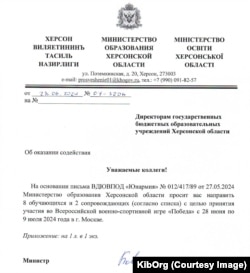 В Херсонской области письма от руководства «Юнармии» прямо влияют на действия чиновников российской администрации, о чем свидетельствуют документы по утечке от KibOrg.
