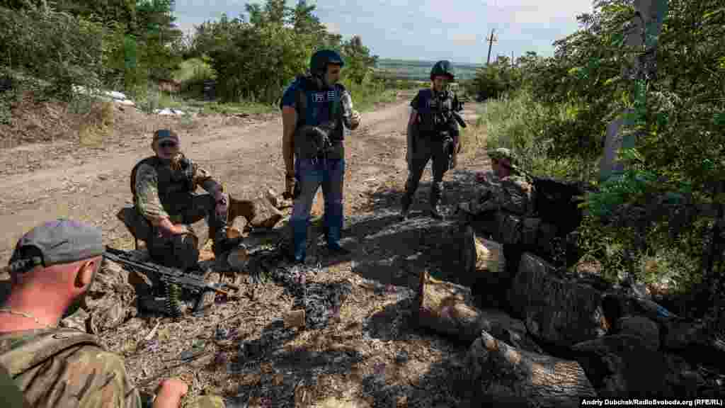 После полудня со стороны Горловки прозвучало несколько выстрелов. Военные засуетились. «Передай по рации, что в нашу сторону работал снайпер», – докладівает «Борода», он – командир на одной из позиций. Выходим на позиции, начинается бой