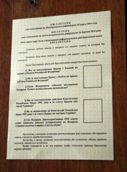 16 марта 2014 года на территории Крыма и Севастополя прошел непризнанный большинством стран мира «референдум» о статусе полуострова, по результатам которого Россия включила Крым в свой состав. Ни Украина, ни Европейский союз, ни США не признали результаты голосования на «референдуме». Президент России Владимир Путин 18 марта объявил о «присоединении» Крыма к России.