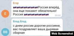 – Россия, вперед, она еще покажет обязательно! Россия! – звучит голос в противовес.