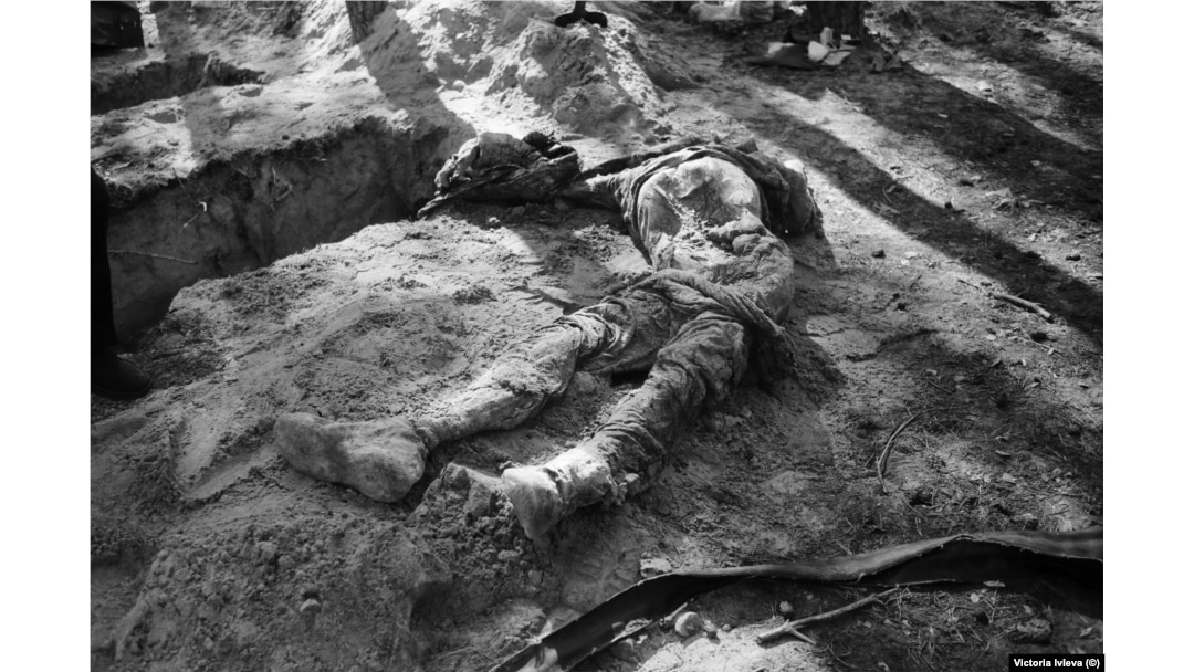 На моих глазах люди в белых одеждах выкапывают человека, похороненного с рюкзаком за спиной. У него нет ни имени, ни фамилии. Только полуистлевший рюкзак и номер на могильном кресте. Человека кладут в белый пластиковый мешок. Плотно застегивают молнию. Подписывают "Невiдомий чоловiк" – неизвестный мужчина.